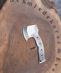 Für das Beil kommt 5- 6 mm dickes Stahl Blech 1.2235 zum Einsatz.