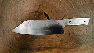 Die Messerklingen werden aus Flachmaterial mit entsprechender Stärke mit dem Plasmaschneider ausgeschnitten und geschliffen.