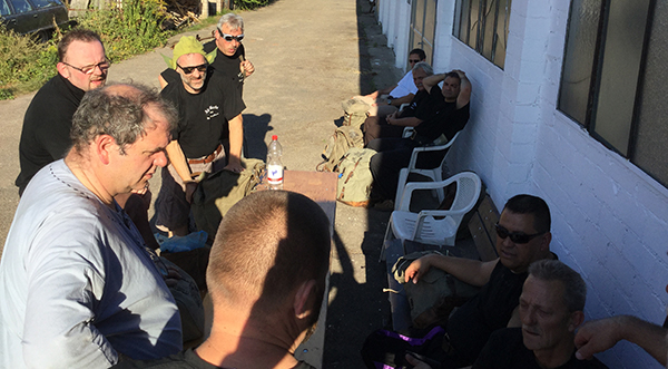 Sie sind richtig gut drauf, klar, gestandene Männer unterwegs.