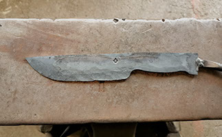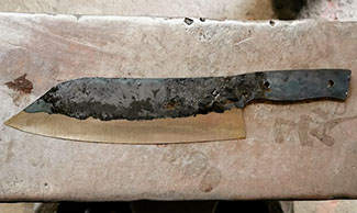 Im nächsten Schritt wird aus dem Flachmaterial die Messer Klinge in Form geschmiedet.