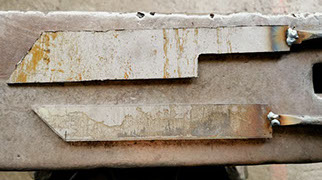 Die Messerklingen werden aus Flachmaterial mit entsprechender Stärke mit dem Plasmaschneider ausgeschnitten und geschliffen.