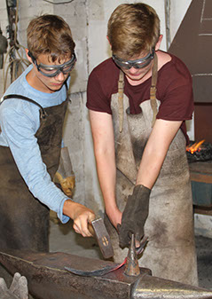 zusammen an dem Schmiedestück arbeiten.